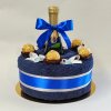 Dortík z kvalitní osušky modré barvy (100% bavlna, gramáž 500 g/m2, rozměry 70x140 cm), šampaňské, bonbony, doplňky