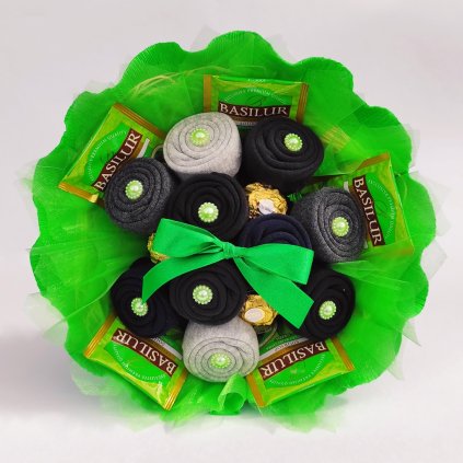 Originální kytička do ruky s bonbóny a oříšky